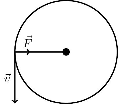 Consider a particle moving in a circle orbit, as shown in Figure 6.3. The centripetal force is always perpendicular to the motion. The instantaneous displacement, \(d\vec{s}\), is parallel to \(\vec{v}\) because \(\vec{v} = d\vec{s}/dt\).