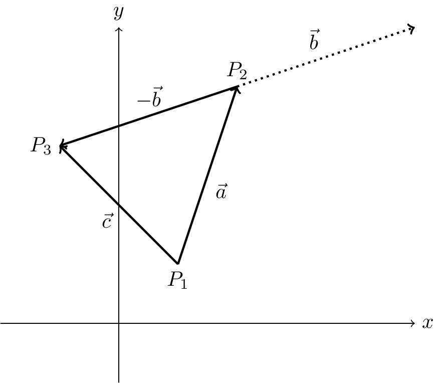 Subtracting \(\vec{b}\) from \(\vec{a}\) can be achieved by adding \(-1 \times \vec{b} = -\vec{b}\) to \(\vec{a}\). This is illustrated in Figure 3.2. \[ \vec{c} = \vec{a} - \vec{b} = \vec{a} + (-\vec{b}). \]